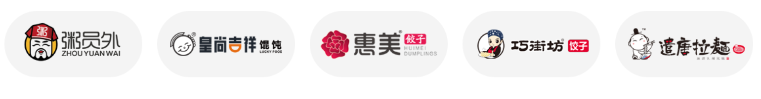 餐飲客戶:粥員外、皇尚吉祥餛飩、惠美餃子、巧街坊餃子、遣唐拉面